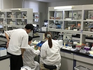 前列左から  山田さん(4年生)  東瀬さん(修士1年生)  野田さん(修士2年生)